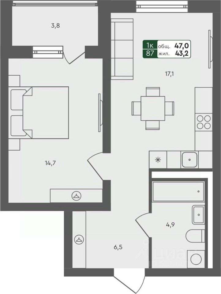 Продаётся 1-комнатная квартира в строящемся доме (ГП-4 (Березовая, 1)), срок сдачи: II-кв. 2027, общей площадью 47 кв.м., на 4 этаже. Проект в формате "Дома не выше сосен" отражает синтез великолепной архитектуры, престижной инфраструктуры и разумной стоимости. Жилье повышенного качества по доступной цене городского типа (квартиры), таунхаусы и индивидуальные дома с земельными участками характеризуются высокой транспортной доступностью исторического Тобольского тракта и формируют гармоничную и экологичную среду для комфортного проживания.