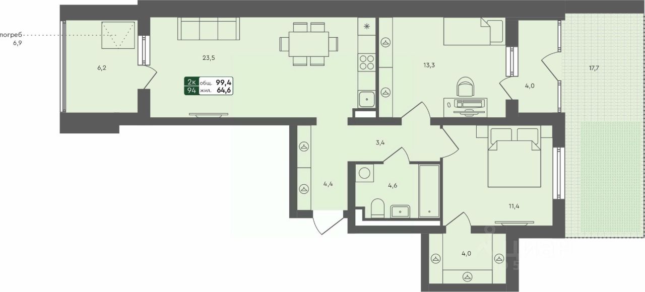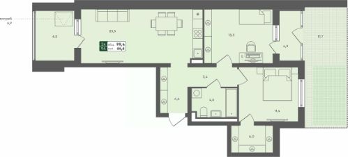 Продаётся 2-комнатная квартира в строящемся доме (ГП-4 (Березовая, 1)), срок сдачи: II-кв. 2027, общей площадью 99.4 кв.м., на 1 этаже. Проект в формате "Дома не выше сосен" отражает синтез великолепной архитектуры, престижной инфраструктуры и разумной стоимости. Жилье повышенного качества по доступной цене городского типа (квартиры), таунхаусы и индивидуальные дома с земельными участками характеризуются высокой транспортной доступностью исторического Тобольского тракта и формируют гармоничную и экологичную среду для комфортного проживания.
