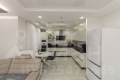 Современный ремонт по дизайн-проекту, выполнен в нейтральных тонах. Очень продуманная планировка квартиры: большая кухня-гостиная, просторная спальня, просторный санузел, балкон с панорамным остеклением. Комнаты правильной формы, что позволяет прекрасно зонировать пространство, расставлять мебель и остается достаточно свободного места.