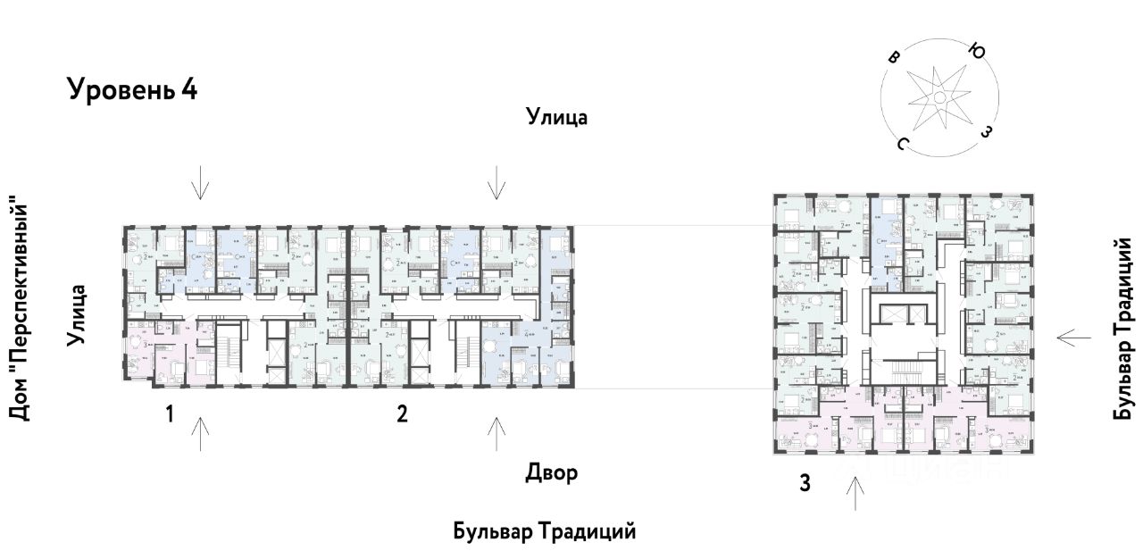 -Сквозные парадные с прозрачными входными группами, колясочными и велосипедными