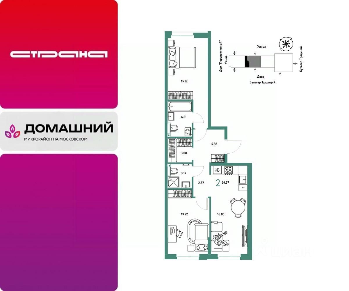 Новая квартира в ЖК "Домашний" напрямую от федеральной группы компаний "Страна Девелопмент". Финансовый партнер — банк "ДОМ.РФ".