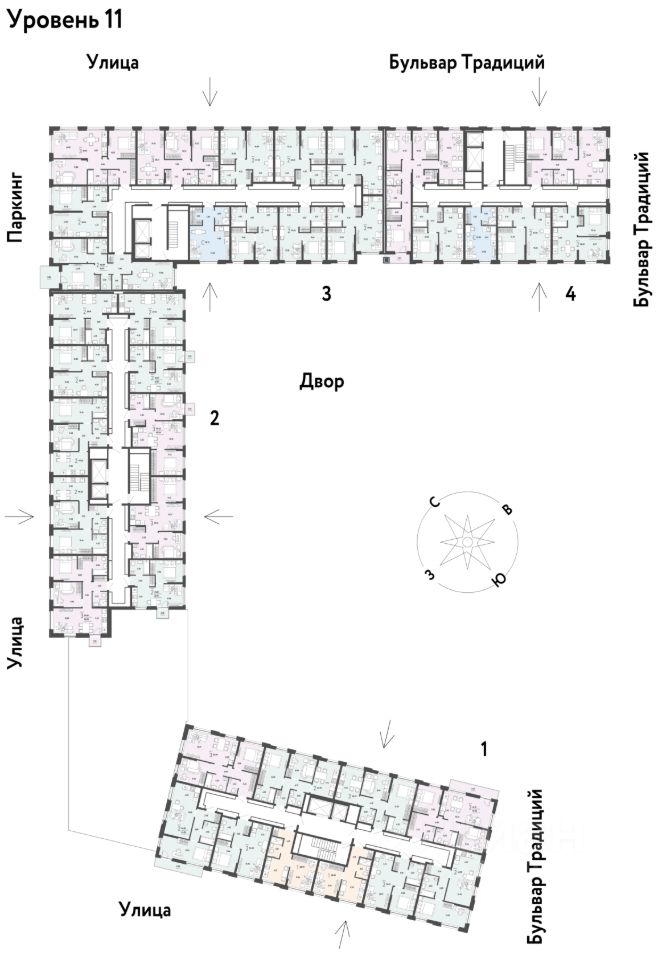 Внутри микрорайона появится огромный пешеходный бульвар — бульвар Традиций. Центром притяжения станут открытые пространства для отдыха жителей и гостей микрорайона, которые легко меняются под сезонные сценарии отдыха: новогодняя елка, ярмарки, кинопоказы и т.д.