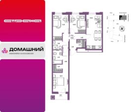 Продается 3комнатная квартира на 2 этаже от застройщика Страна Девелопмент. Площадь квартиры 79,14 кв. м.