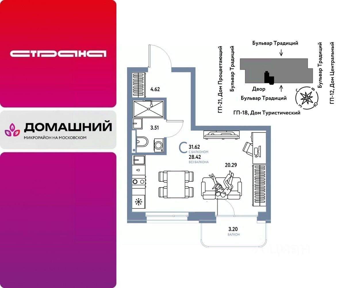 Новая квартира в ЖК "Домашний" напрямую от федеральной группы компаний "Страна Девелопмент". Финансовый партнер — банк "ДОМ.РФ".