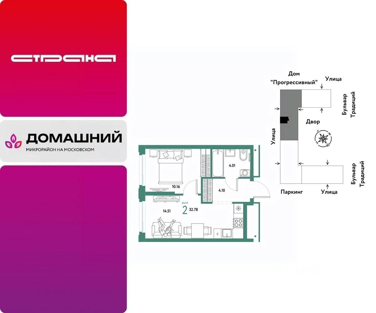 Продается 2комнатная квартира на 11 этаже от застройщика Страна Девелопмент. Площадь квартиры 32,78 кв. м.