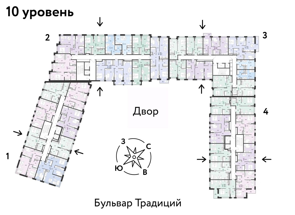 Внутри микрорайона появится огромный пешеходный бульвар — бульвар Традиций. Центром притяжения станут открытые пространства для отдыха жителей и гостей микрорайона, которые легко меняются под сезонные сценарии отдыха: новогодняя елка, ярмарки, кинопоказы и т.д.