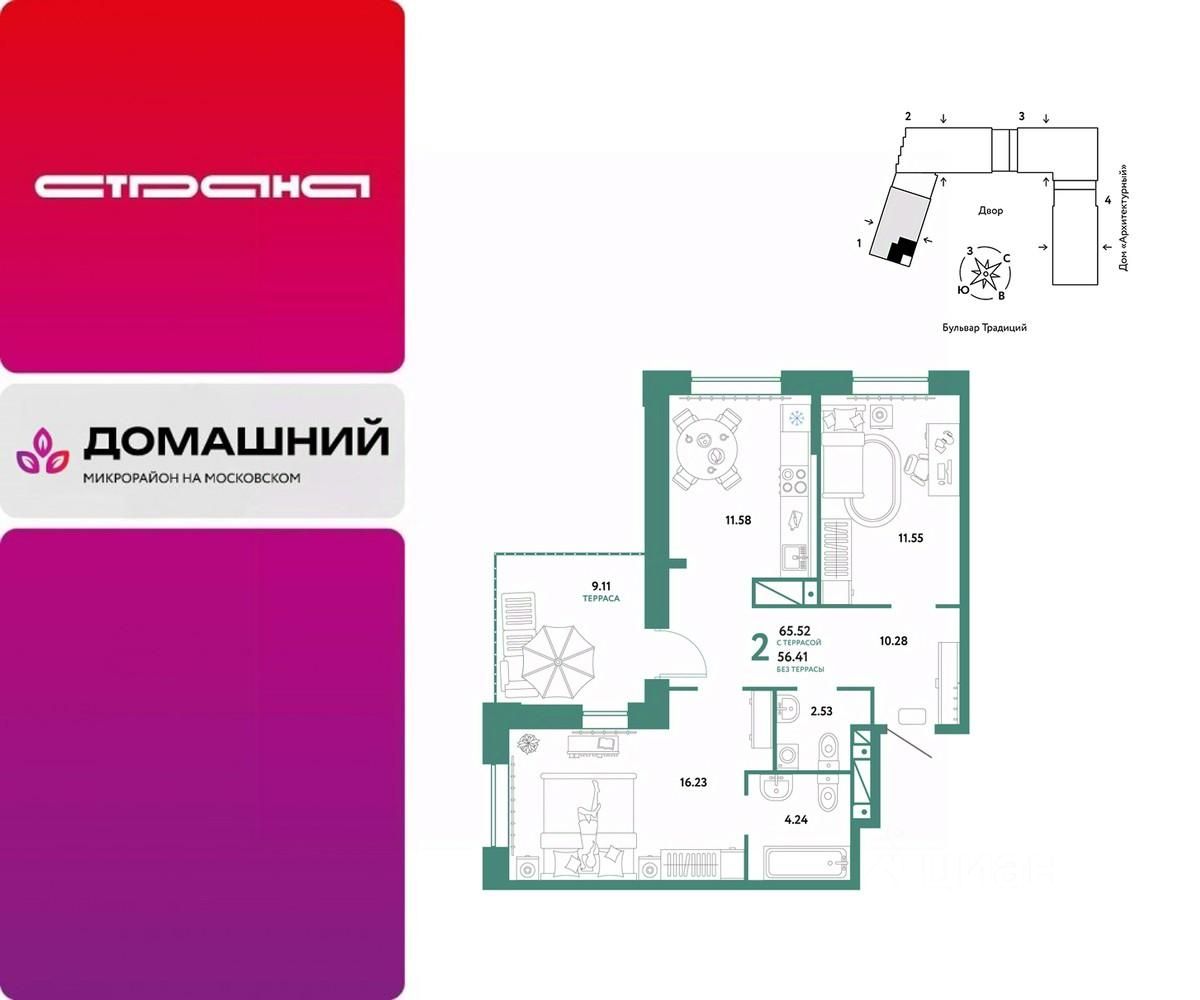 Продается 2комнатная квартира на 13 этаже от застройщика Страна Девелопмент. Площадь квартиры 65,52 кв. м. Стоимость указана без учета акций.