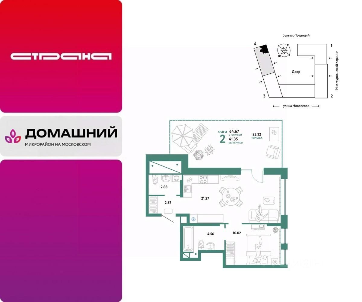 Продается 2комнатная квартира на 9 этаже от застройщика Страна Девелопмент. Площадь квартиры 64,67 кв. м.