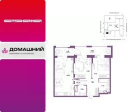 Продается 3комнатная квартира в новом микрорайоне "Домашний" в районе Московского тракта рядом с ТРЦ "Колумб". Общая площадь квартиры 68,02 кв. м. Сдача — в 4 квартале 2024 года.