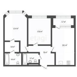 - выход на теплую лоджию из кухни - гостиной 18 кв.м.