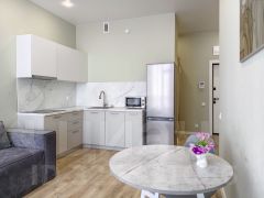 Продается уютная квартира в новом ЖК, формата 1+. В квартире сделан качественный ремонт в современных тонах, установлена хорошая сантехника и мебель. Квартира подойдет как инвестиция для сдачи или для жизни.