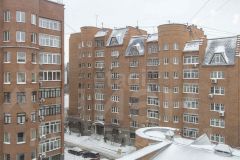 Кирпичный восьмиэтажный дом расположен в историческом центре города, в тихом, защищенном от машин дворе.