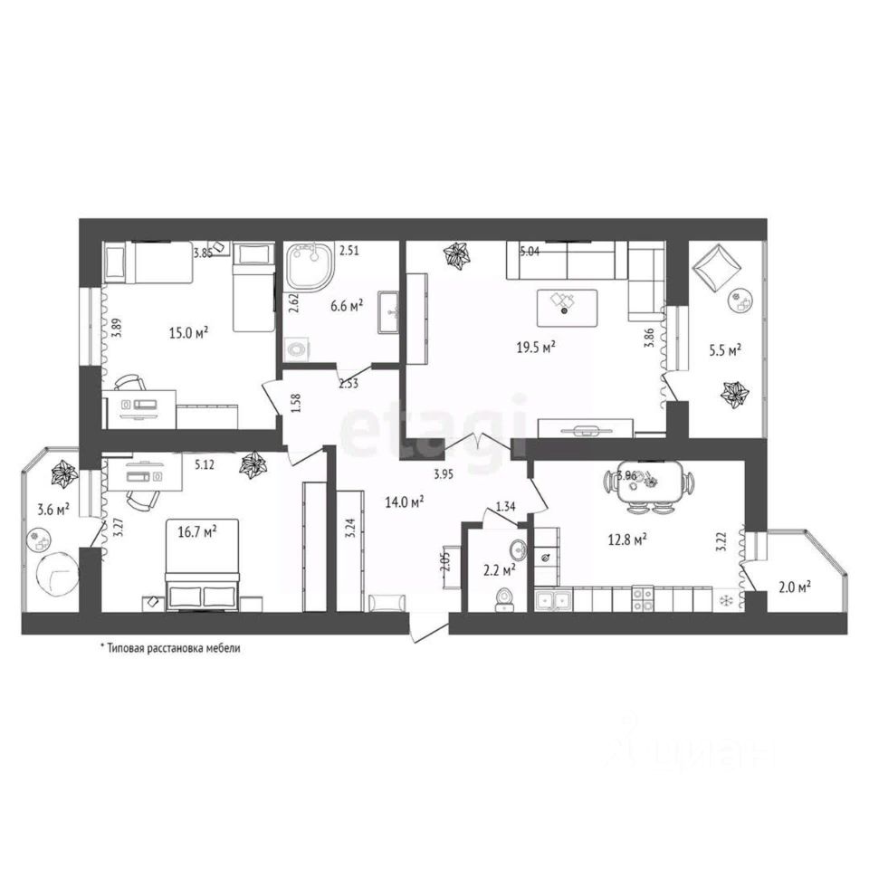 Общая площадь86,8 м²