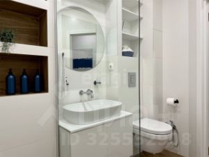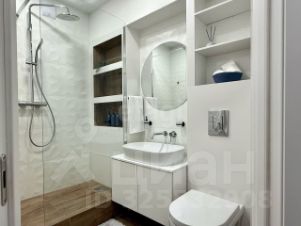 • Современный санузел, выложенный итальянской плиткой Atlas Concorde, с качественной сантехникой: душевая, кран и гигиенический душ от Kludi (Германия), унитаз Villeroy Boch и раковина Artceram Ghost (Италия) с инсталляцией Grohe.