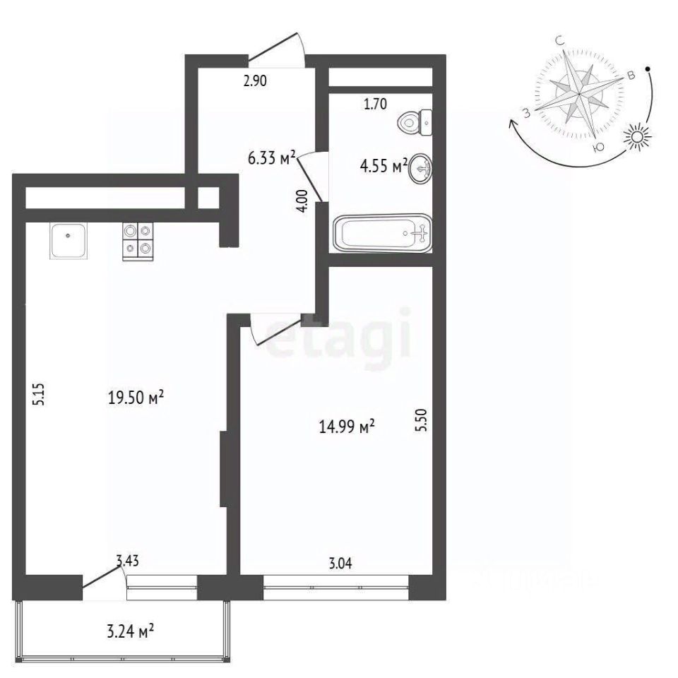 Продается квартира площадью 48 кв.м. с функциональной планировкой в жилом комплексе "Уездные кварталы". Объект представляет собой просторное светлое помещение формата 1+, где кухня-гостиная 21 кв.м. органично объединяет зону для готовки и отдыха. Квартира сдана с улучшенной черновой отделкой, что позволяет новому владельцу реализовать индивидуальный дизайн-проект без масштабных подготовительных работ. Из жилого пространства имеется выход на балкон с видом на озелененный и благоустроенный закрытый двор.