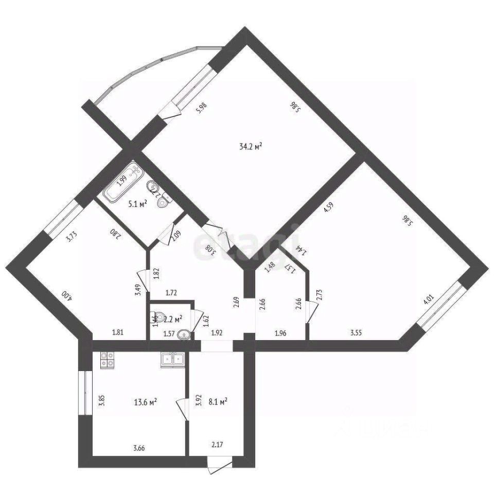 Мега-удачная планировка - непременно придется по вкусу людям, любящим свободные пространства, молодым, энергичным, неординарным.
