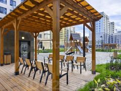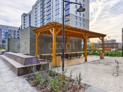 Закрытые дворы без машин обеспечивают безопасную среду и тишину в микрорайоне. Придомовая территория проекта продумана таким образом, где каждый найдёт себе занятие по душе, будь это детские игры или отдых и досуг для взрослых. В данном проекте у застройщика предусмотрена безбарьерная среда. Она обеспечивает беспрепятственное, безопасное, независимое передвижение маломобильных групп населения в условиях окружающей среды.