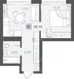У вас есть уникальная возможность стать обладателем уютной квартиры в новостройке на 9 этаже. Площадь квартиры составляет 32.10 кв.м., а кухня просторная - 11.91 кв.м.