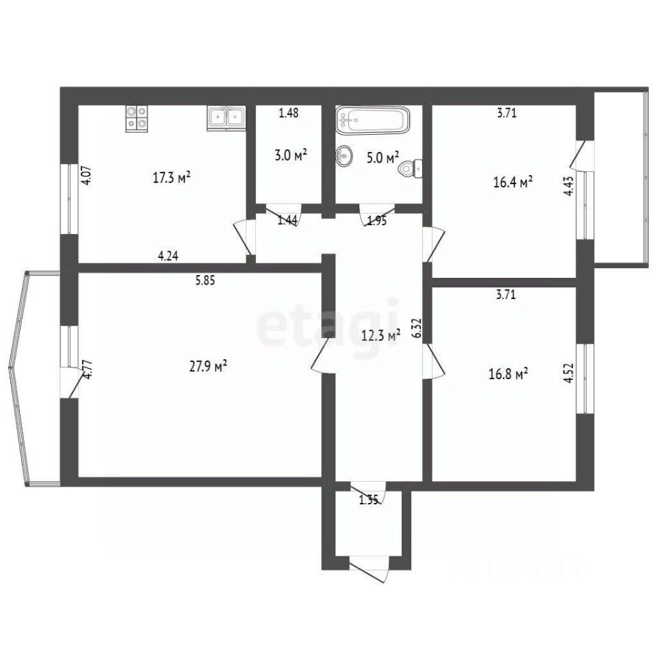 Имеется застекленная лоджия и балкон. При продаже остается кухонный гарнитур со встроенной бытовой техникой, обеденный стол со стульями, шкафы.