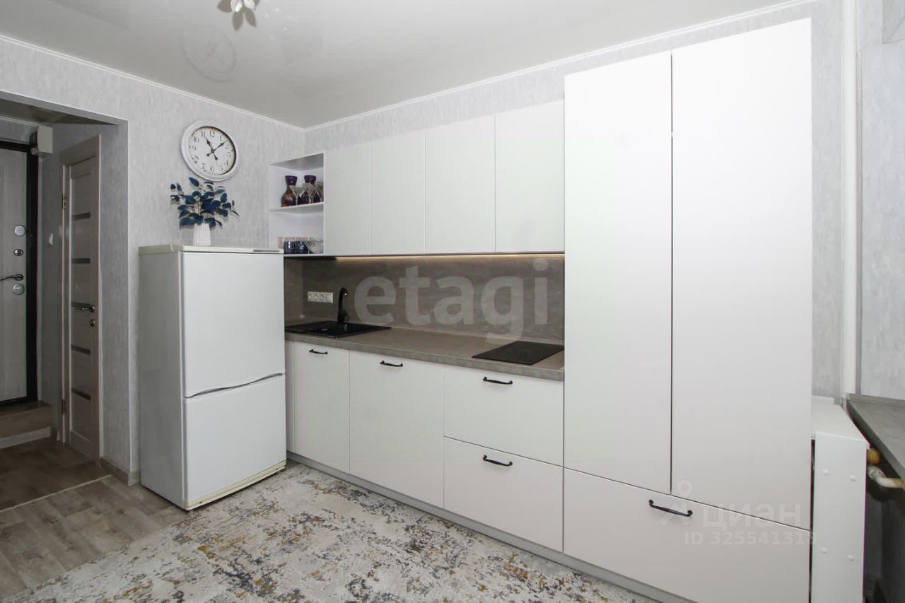 При продаже остается современный кухонный гарнитур со встроенной варочной поверхностью и стиральной машинкой.