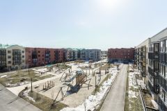- Жилой квартал делится на 2 части — восточную (таунхаусы и дуплексы) и западную (квартиры), разделенные между собой семейной и спортивной аллеями, что придает комфорт для активных и семейных жителей.