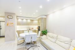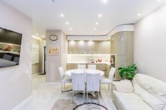 Квартира площадью 43.2 кв.м с дизайнерским ремонтом в теплой палитре расположена в современном ЖК "Домашний". Объект представляет собой просторное помещение формата 1+ с изолированной гардеробной комнатой, что обеспечивает рациональное использование пространства без лишней мебели. Жилой комплекс характеризуется продуманной инфраструктурой: на территории работают детские сады, магазины, аптеки, кафе и сервисные предприятия, планируется открытие новой школы. Внутренний двор является закрытой и безопасной зоной с видеонаблюдением, управляется собственной обслуживающей компанией. Архитектурные решения включают светлые парадные с индивидуальным дизайном, оборудованные колясочными и велостоянками, а также безбарьерные входы. Транспортная доступность позволяет оперативно достигать центральных и периферийных районов города. Завершенный вид микрорайону придает пешеходный бульвар, изолированный от транспорта и предназначенный для прогулок и отдыха. Состояние квартиры — полностью готовое к проживанию.