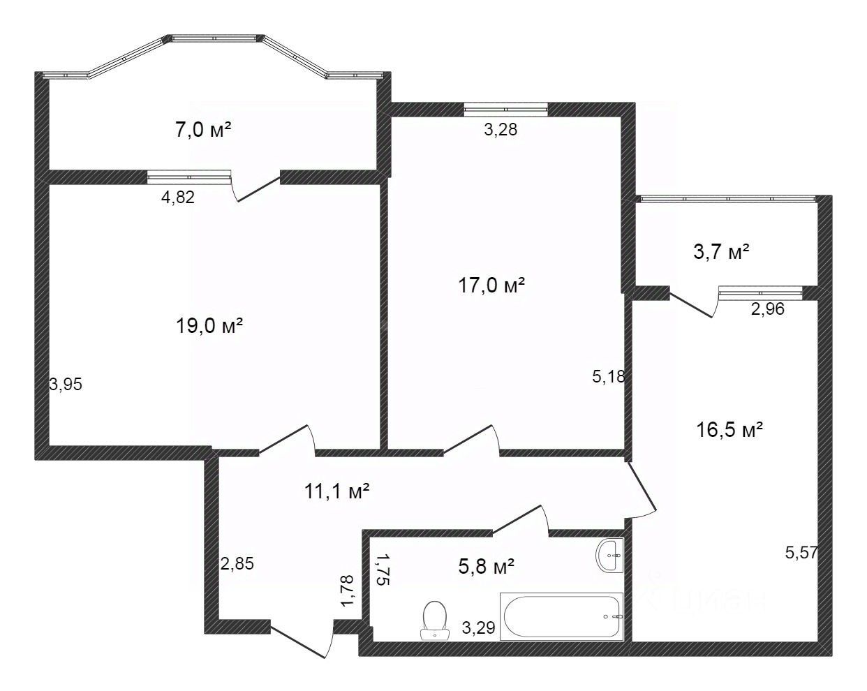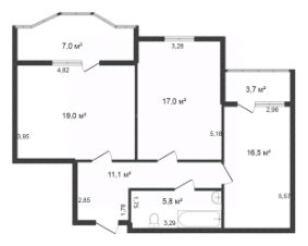 Объект отличается продуманной планировкой: в спальне оборудована гардеробная, а две застекленные лоджии увеличивают полезное пространство.