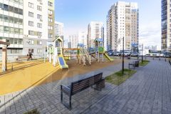 Во дворе есть детская площадка, много парковочных мест. Удобное расположение ЖК: до центра 10 минут ходьбы, Магеллан 10 минут, до супермаркета Окей 15 минут. На территории ЖК работают 3 больших магазина "Магнит", "Пятерочка", "Метрополис". До детского сада 100 пешком 10 минут.