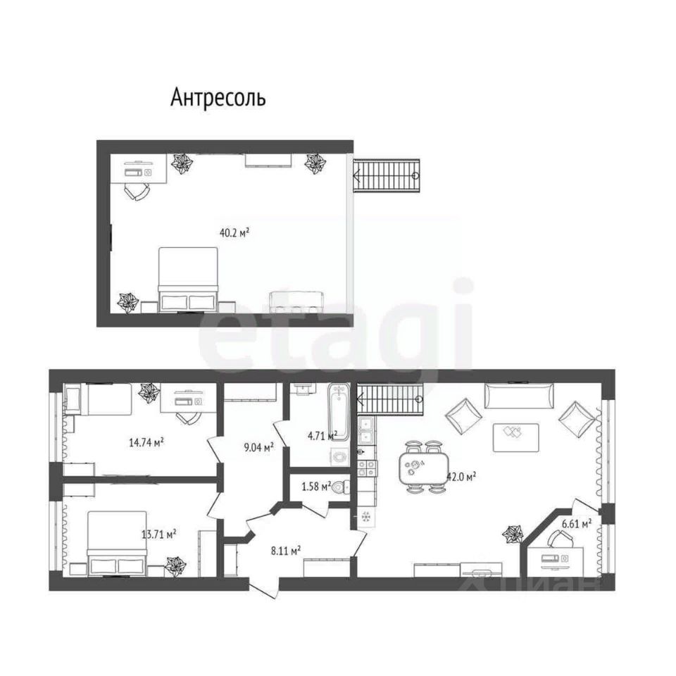 Продаётся шикарная двухуровневая квартира формата 2+ на Московском тракте в новом малоэтажном ЖК "Комфорт-Клуб". Если вы любите свежий воздух и предпочитаете жить подальше от городской суеты, но при этом не хотите добираться до города по 20-30 минут, то это ваш идеальный вариант!