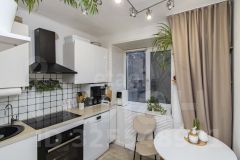 При продаже в квартире остается: кухонный гарнитур со встроенной бытовой техникой, стиральная машина, водонагреватель, диван и стеллажи для хранения и одна детская кровать (170 х 60см),зона прихожей.