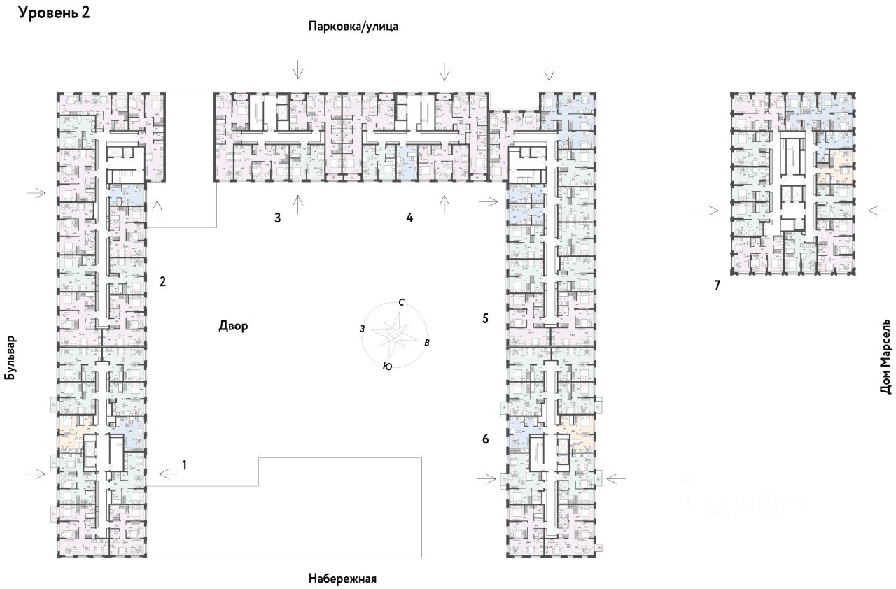 Разнообразие планировок: от классических до квартир с мастер-спальней и террасами.