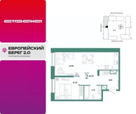 Продается 2комнатная квартира в новом ЖК "Европейский берег". Общая площадь квартиры 46,72 кв. м. Сдача — в 4 квартале 2025 года.
