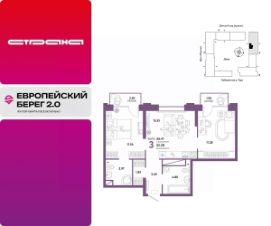 Продается 3комнатная квартира в новом ЖК "Европейский берег". Общая площадь квартиры 56,41 кв. м. Сдача — в 4 квартале 2025 года.