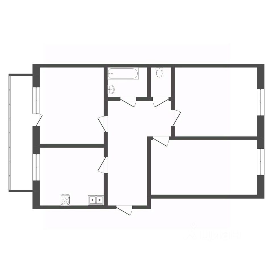 - удобная планировка.Комнаты раздельные, 19,19 и 22 кв.м., кухня 16 кв.м. Все помещения правильной формы.