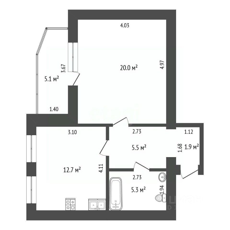 Просторная 1-комнатная квартира в развитом микрорайоне города.