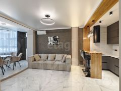 Ключевое преимущество этой квартиры — умная перепланировка: лоджия стала частью большой кухни-гостиной, создав светлую и невероятно просторную зону для отдыха и приема гостей. Здесь же вас ждет современный кухонный гарнитур с надежной фурнитурой и всей необходимой встроенной техникой — просто заезжайте и начинайте жить.