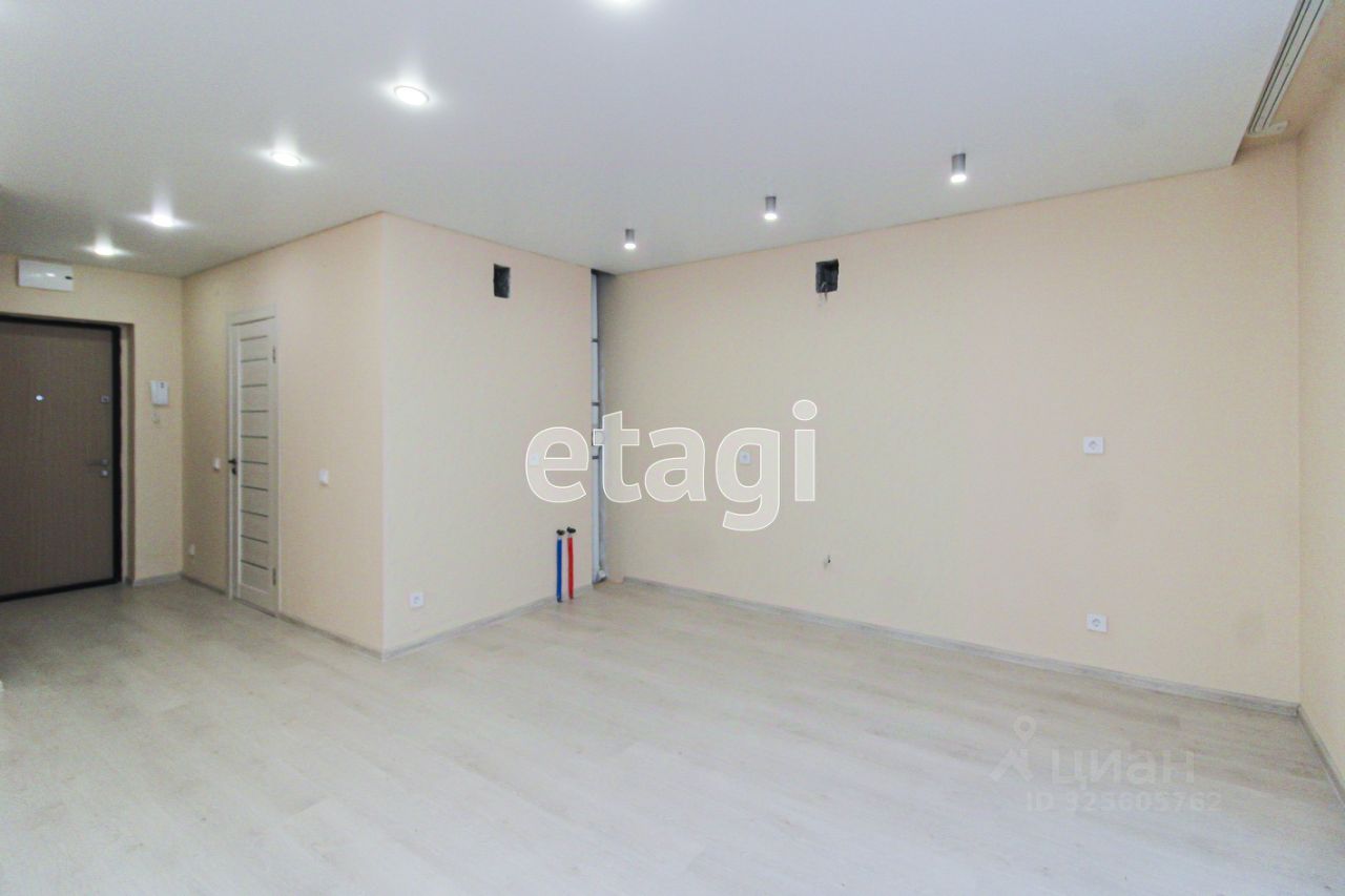В квартире выполнен косметический новый ремонт в приятных тонах: на полу положен ламинат, стены окрашены, монтирован натяжной поток, сделано зонированное освещение. Санузел совмещенный, выложен плиткой, установлена новая качественная сантехника.