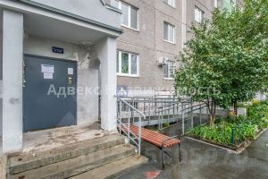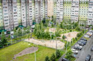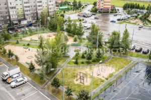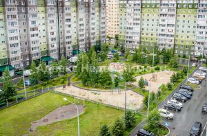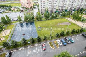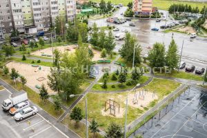 Этаж ухоженный, соседи спокойные, а управляющая компания тщательно заботится о благоустройстве территории. Во дворе есть современная детская площадка и место для выгула собак. В непосредственной близости находятся продуктовые магазины Ямал (3 минуты ходьбы), Магнит и ТЦ Остров. Школа 65 и два детских сада всего в 10 минутах.