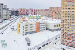 Рядом расположена школа,прямо через забор,закрывающий территорию ЖК, садик, множество магазинов и пункты выдачи, аптеки и кофейни и новая ПОЛИКЛИНИКА. Сбоку двора расположена площадка для выгула собак. Развязка в разные концы города тоже недалеко.