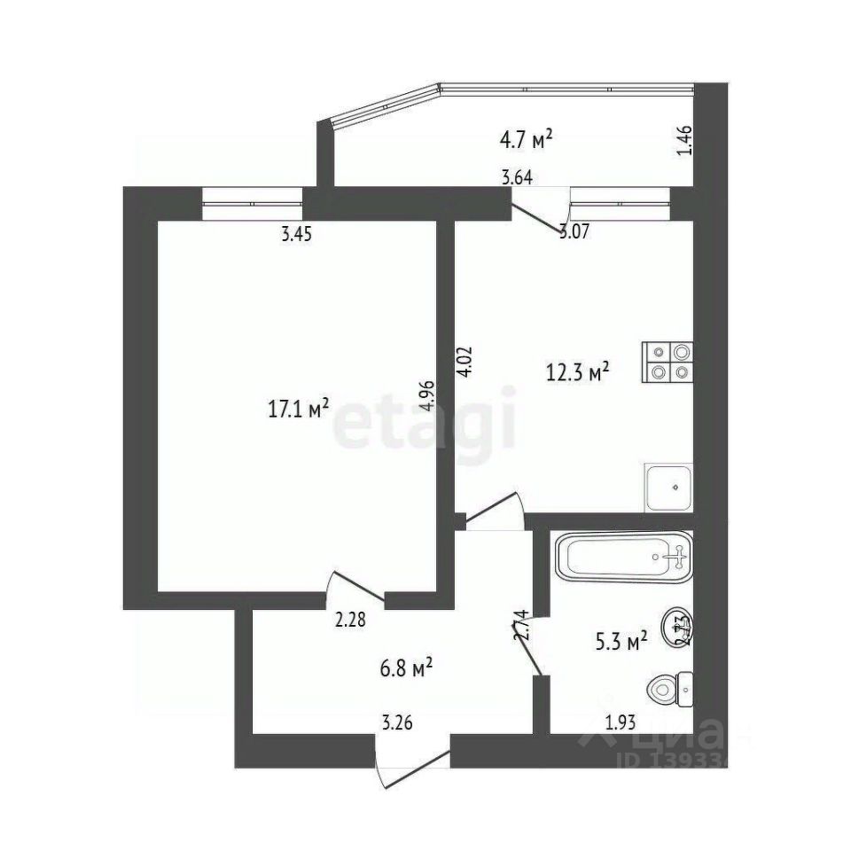 12,3 м²