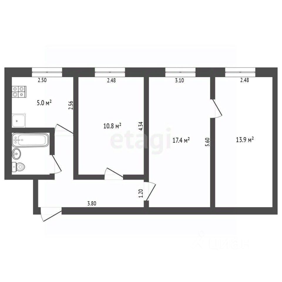56,7 м²