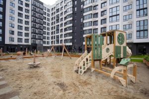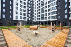 Безопасный закрытый двор с игровыми зонами раделенными по возрастам детей.