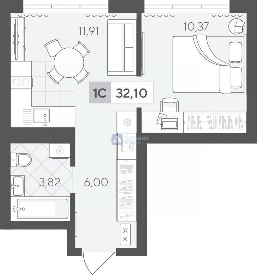 Не упустите шанс приобрести свою собственную квартиру в новостройке! Продается уютная 1-комнатная квартира на 5 этаже с общей площадью 32,10 кв.м. Планировка предусматривает просторную кухню площадью 10,91 кв.м.
