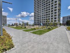Благоустроенная территория: зелёные зоны, дорожки, освещение и видеонаблюдение.