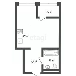 Уютная планировка студии позволяет максимально эффективно использовать пространство, создавая атмосферу уюта и гармонии.