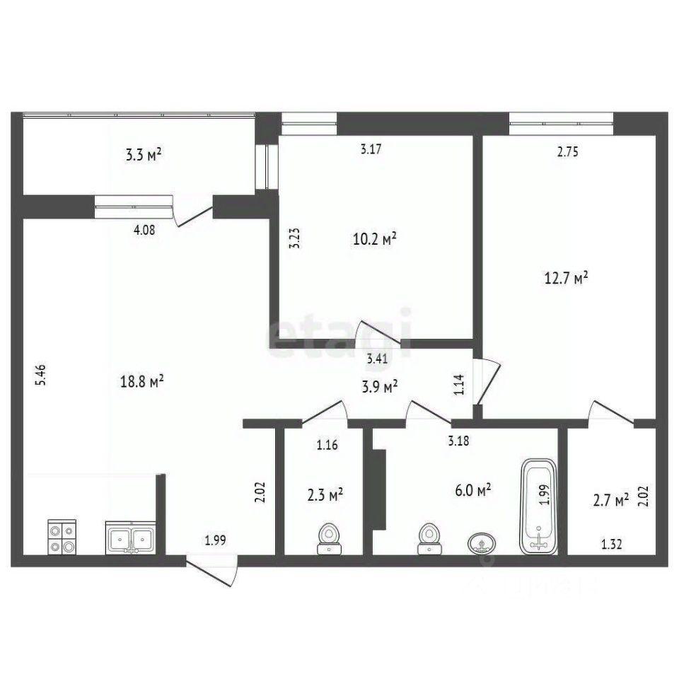 Продам отличную 2+ квартиру с кухней-гостиной и 2-мя полноценными комнатами, гардеробной, ванной и постирочной.