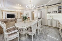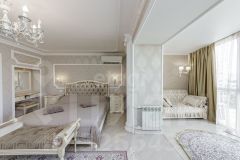 Каждый элемент интерьера продуман до мелочей: стильная мебель, изысканные осветительные приборы, обои и текстиль в классическом стиле создают атмосферу уюта и элегантности. Кухня оборудована современной техникой от бренда SMEG, а четырехдверный холодильник от премиального SHARP обеспечит вам все необходимое для кулинарных шедевров. В квартире установлены два кондиционера от надежной компании MITSUBISHI для вашего комфорта в любое время года.