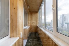 Балкон утеплен и обшит вагонкой, а также здесь установлены два вместительных шкафа.