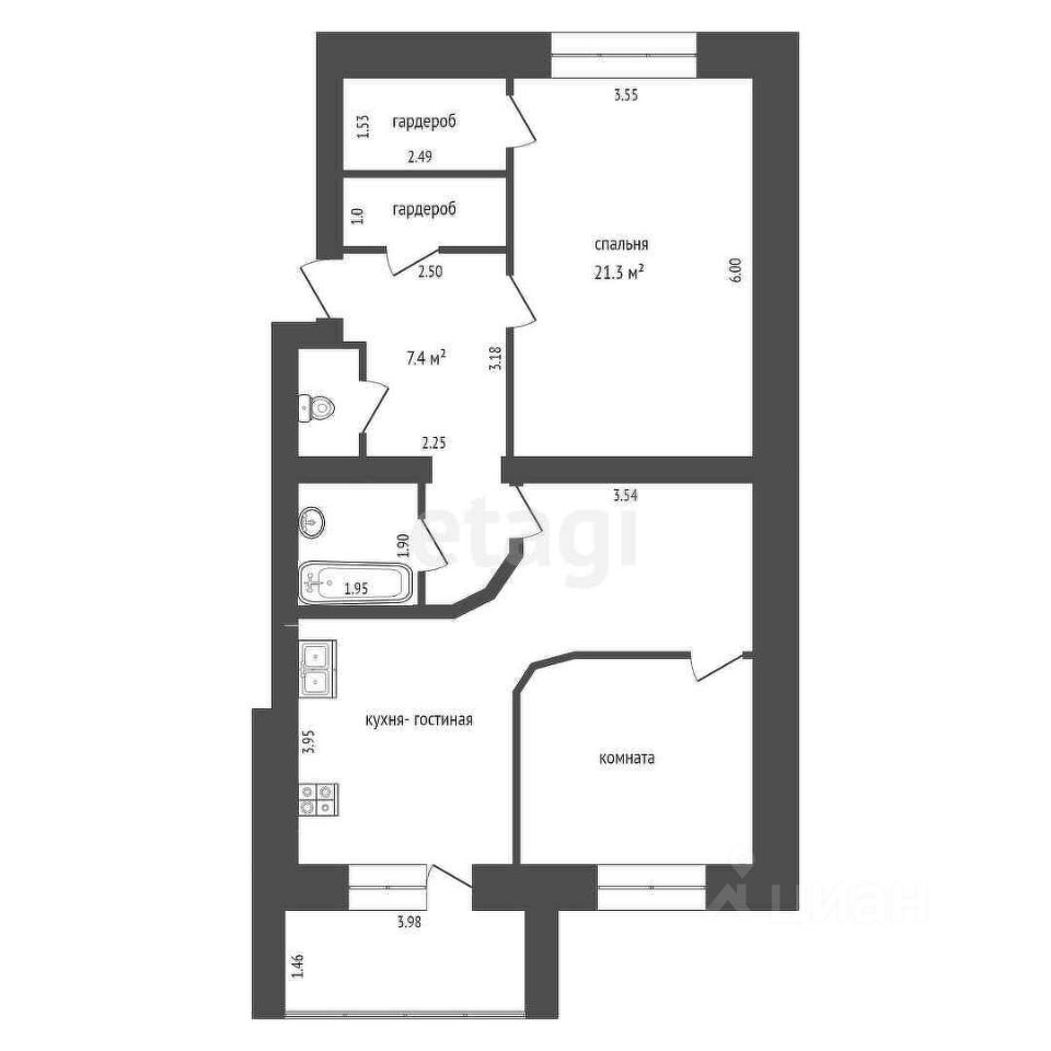 Очень гармоничная планировка: две изолированных комнаты и просторная кухня-гостиная!