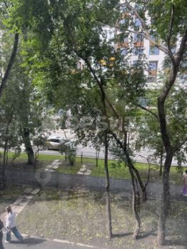 Окна квартиры выходят на улицу Первомайская на западную сторону, на кроны деревьев.